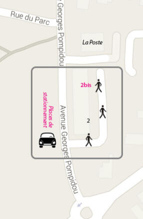Si vous venez en voiture, vous pouvez stationner sur le parking du cimetière en face de l'immeuble, l'entrée se fait par l'arrière, au fond de la résidence au 2bis.